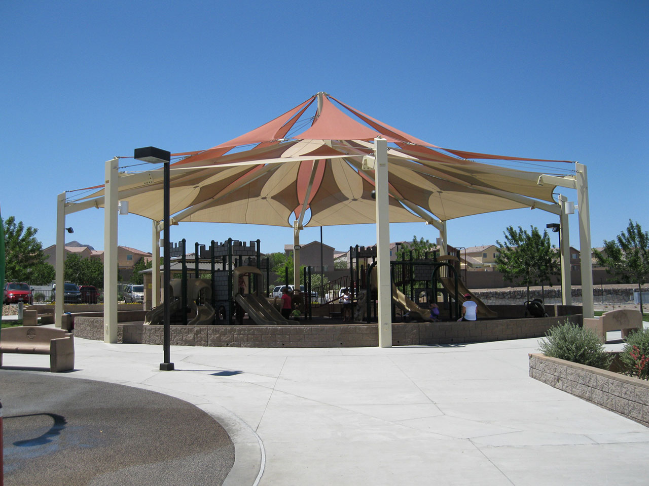 The Super Span Octagon Multi-Level Multi-Panel represents an impressive addition to our shade offerings. This structure creatively brings together various design elements into a single, striking creation, making it a standout choice for those seeking both style and function in their outdoor spaces.