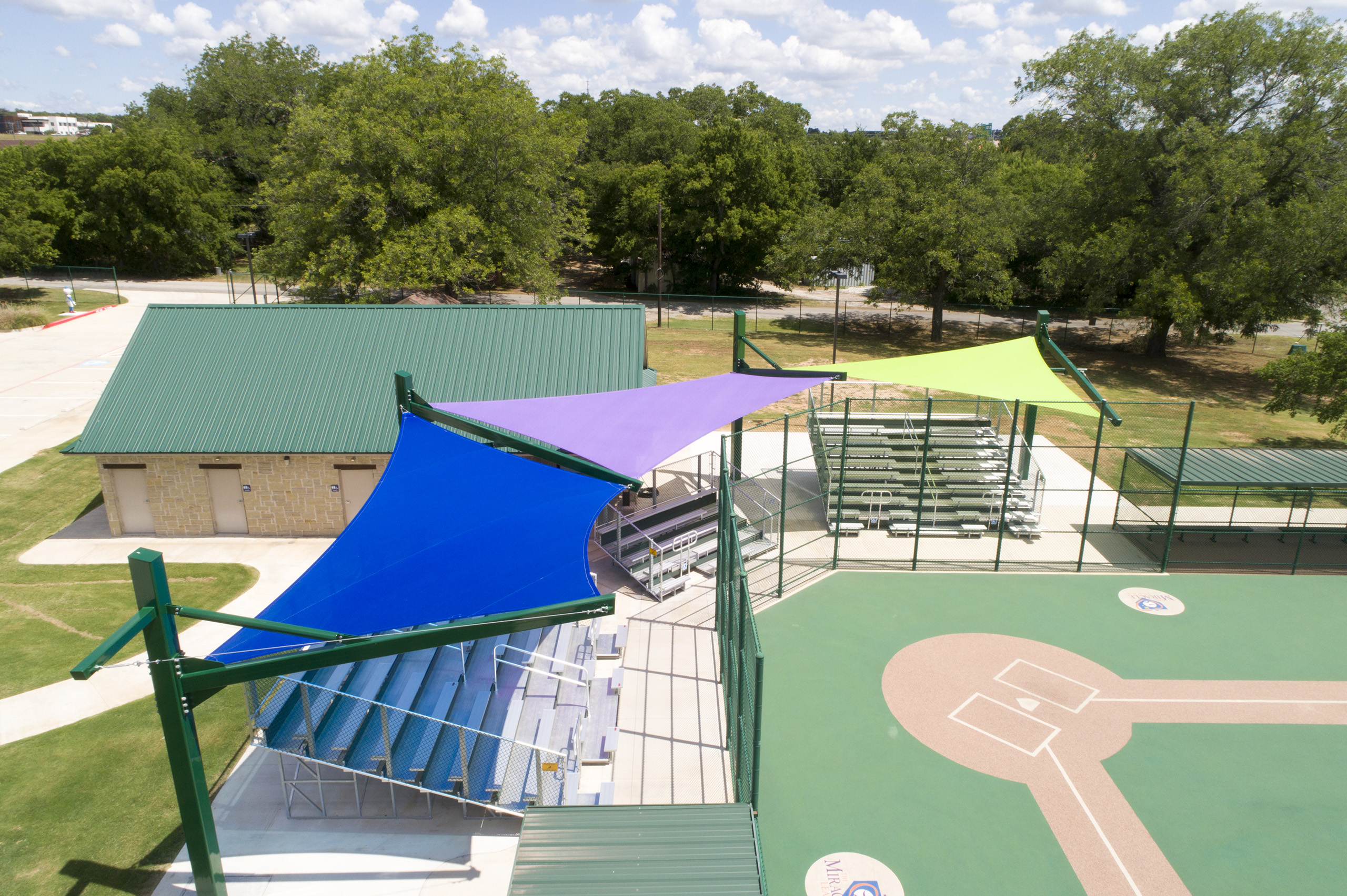 These shade structures can meet the functional and aesthetic preferences of various industries and applications. Baseball fields and other recreational facilities can install them to provide shaded areas that allow visitors to escape the blazing sun. Cantilever hypar shade sails can also add a fashionable touch to outdoor seating areas at high-end apartment buildings.