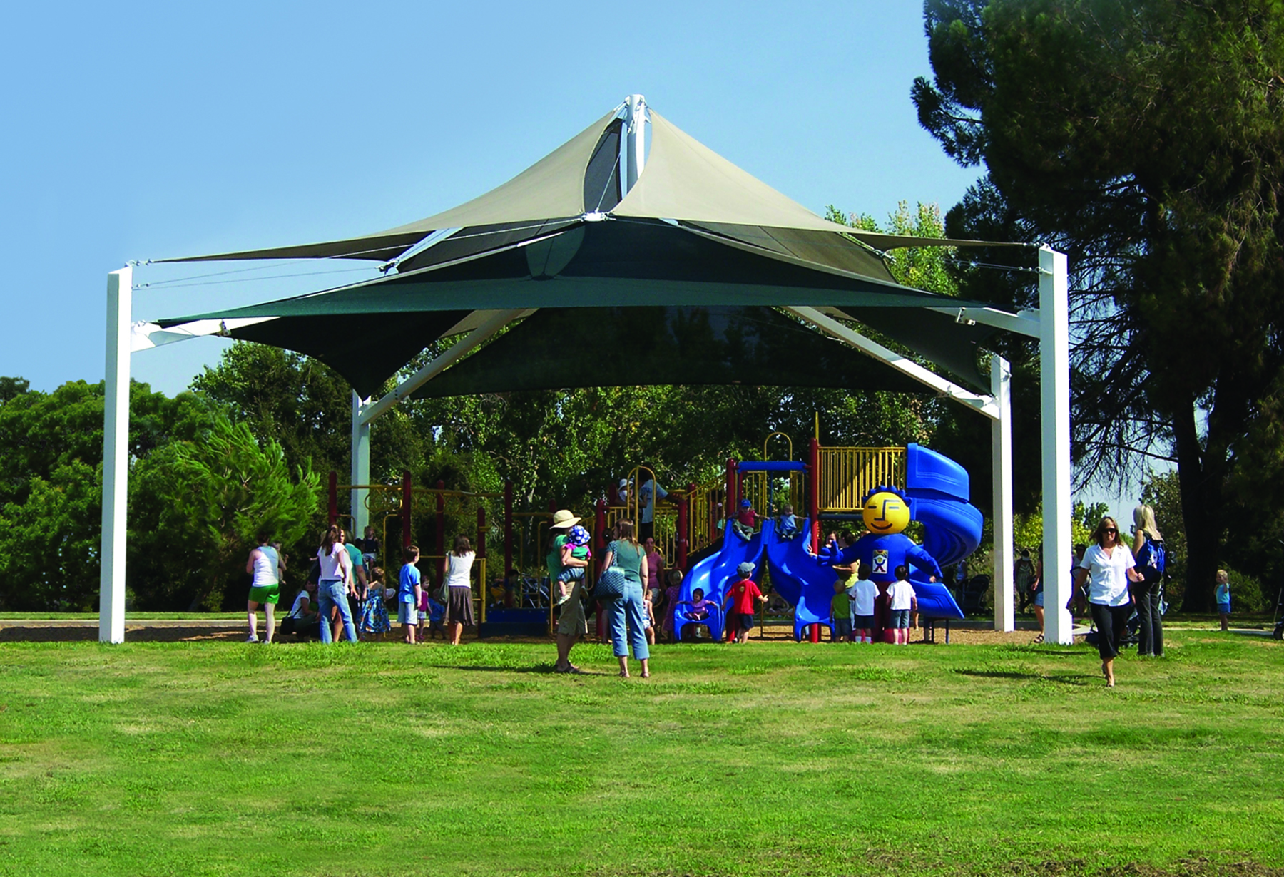 Get many of our standout features in one unit. This Super Span Pyramid Multi-Level structure provides plenty of shade for large playspaces, as well as multiple layers of fabric for a signature look. USA SHADE offers complete design support for your custom project. Our custom services will help in the initial design process all the way through engineering, manufacturing, project management, and construction.