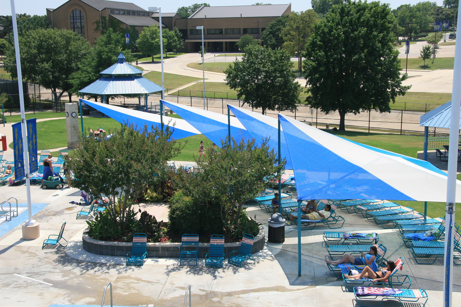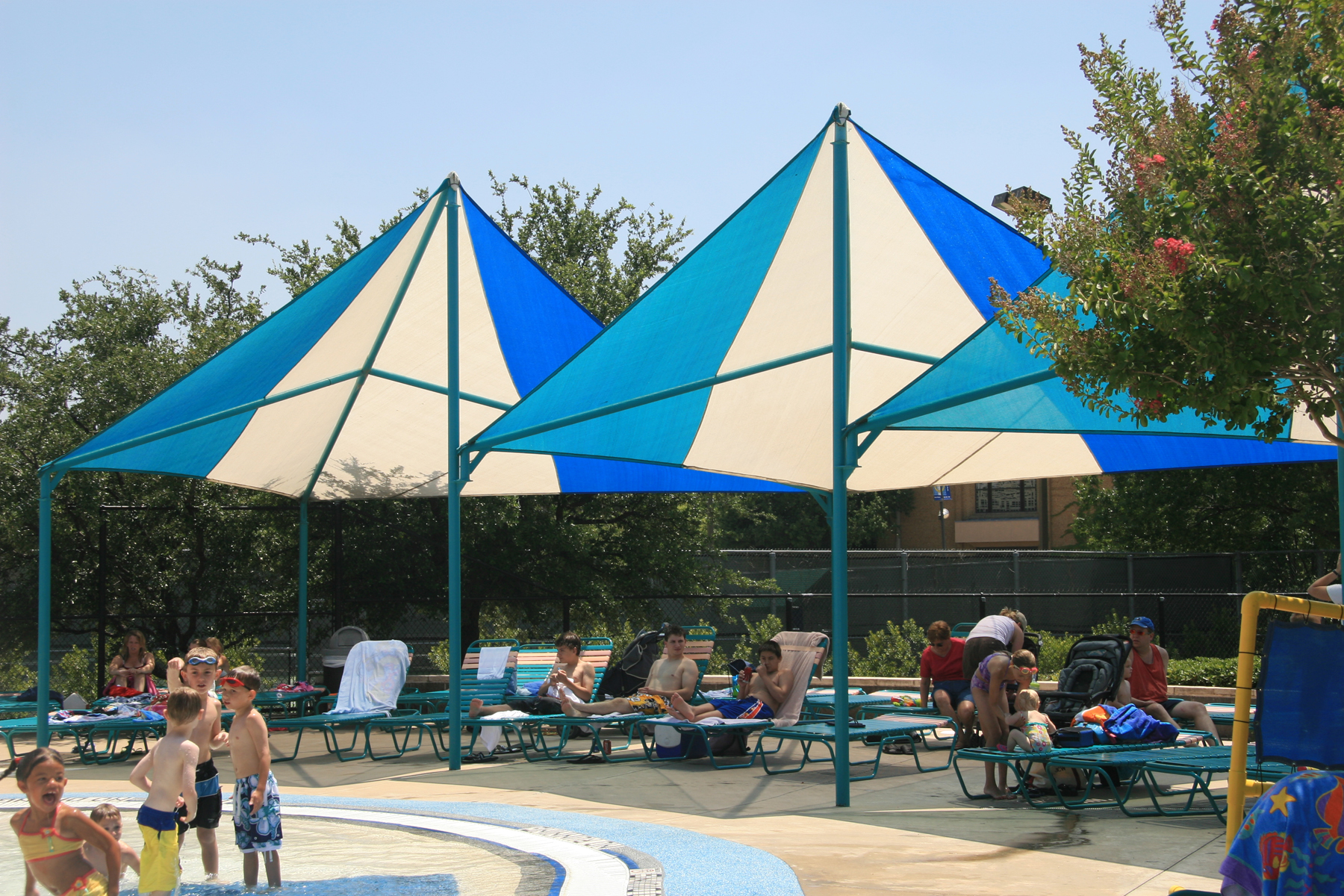 Lifeguards must be ready at a moment's notice to enter the water and make a rescue. To remain alert, it is essential to keep them cool. Our attractive Lifeguard structures provide protection from UV rays, heat exhaustion, and more. Wave structures offer a unique look, adding excitement and color to any area. These structures are designed to represent a "wave", with peaks and valleys. Because of this shape, Wave structures are ideal for waterparks, poolside, seating areas, and more.