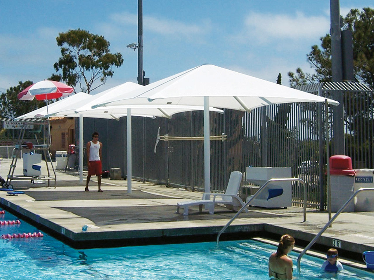 Our Single-Post Pyramid structures can provide almost 200 square feet of shade from a single column.