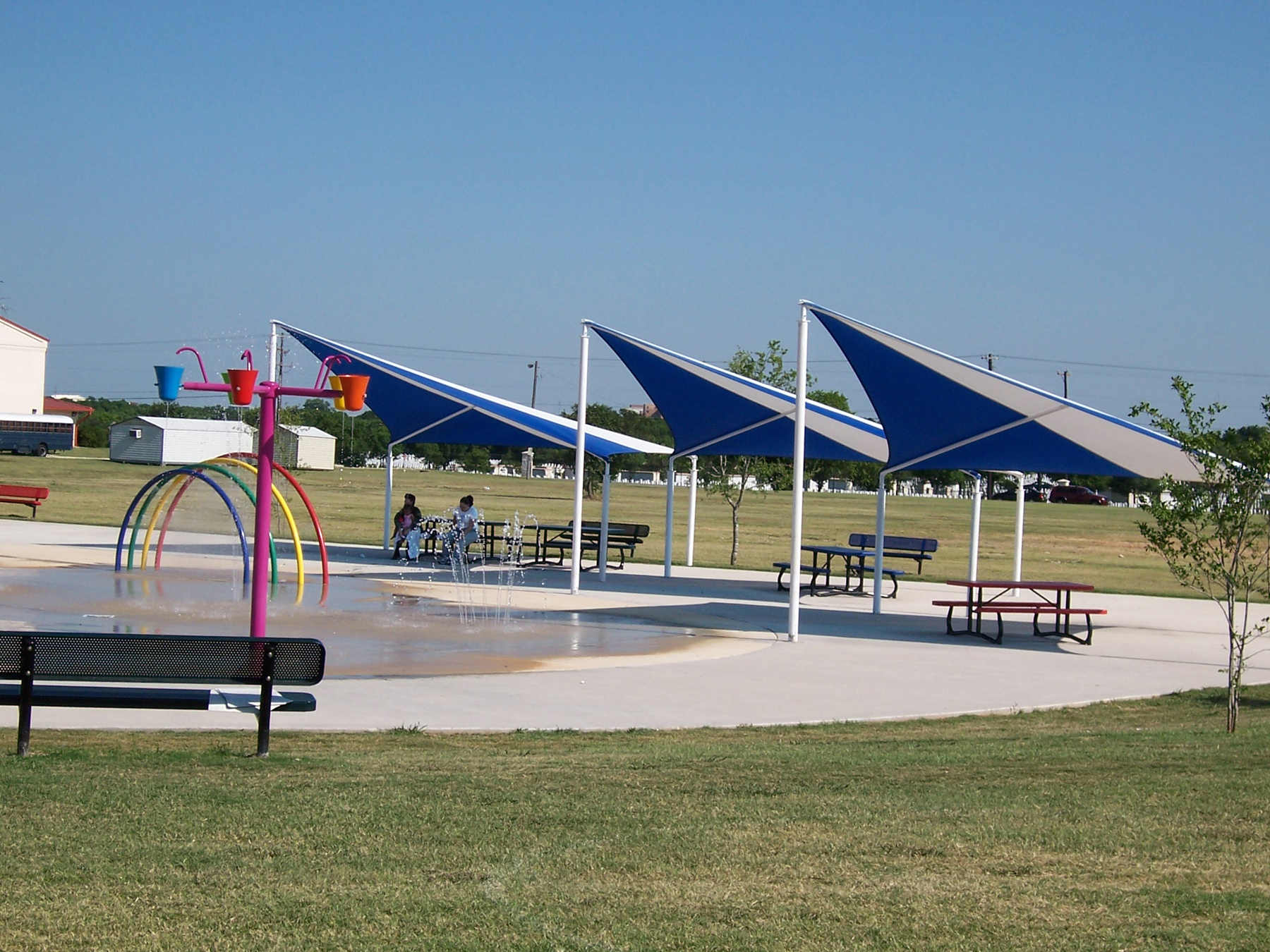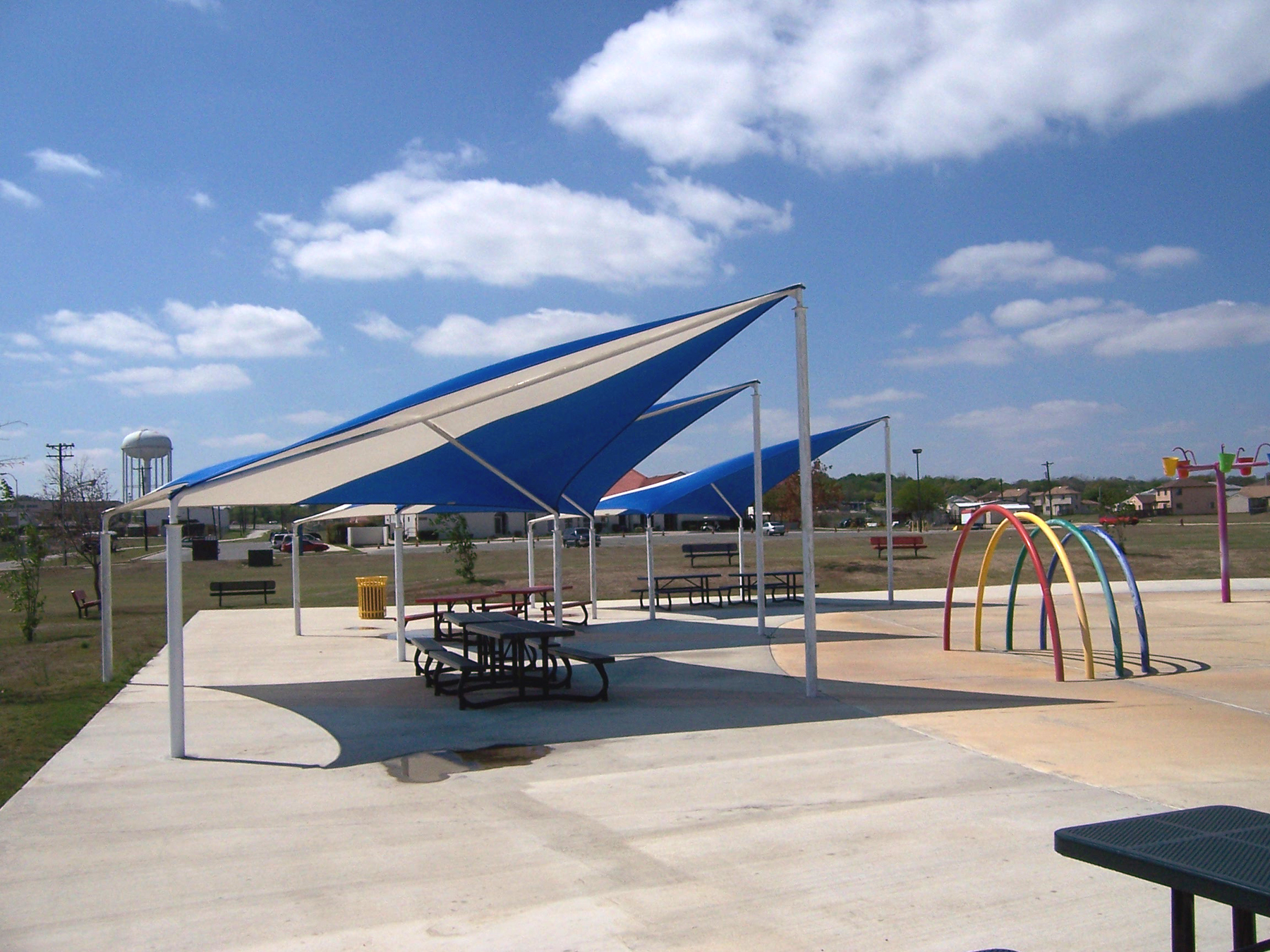 Wave structures offer a unique look, adding excitement and color to any area. These structures are designed to represent a “wave”, with peaks and valleys. Because of this shape, Wave structures are ideal for water parks, poolside, seating areas, and more.