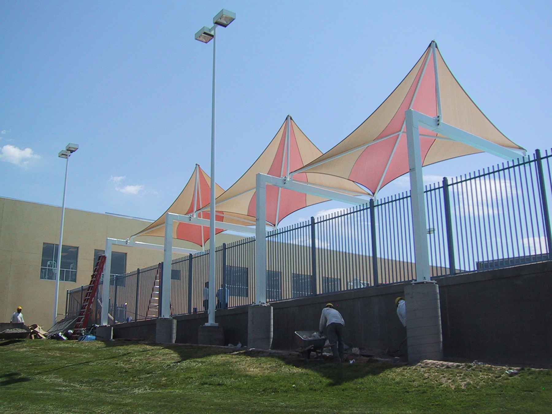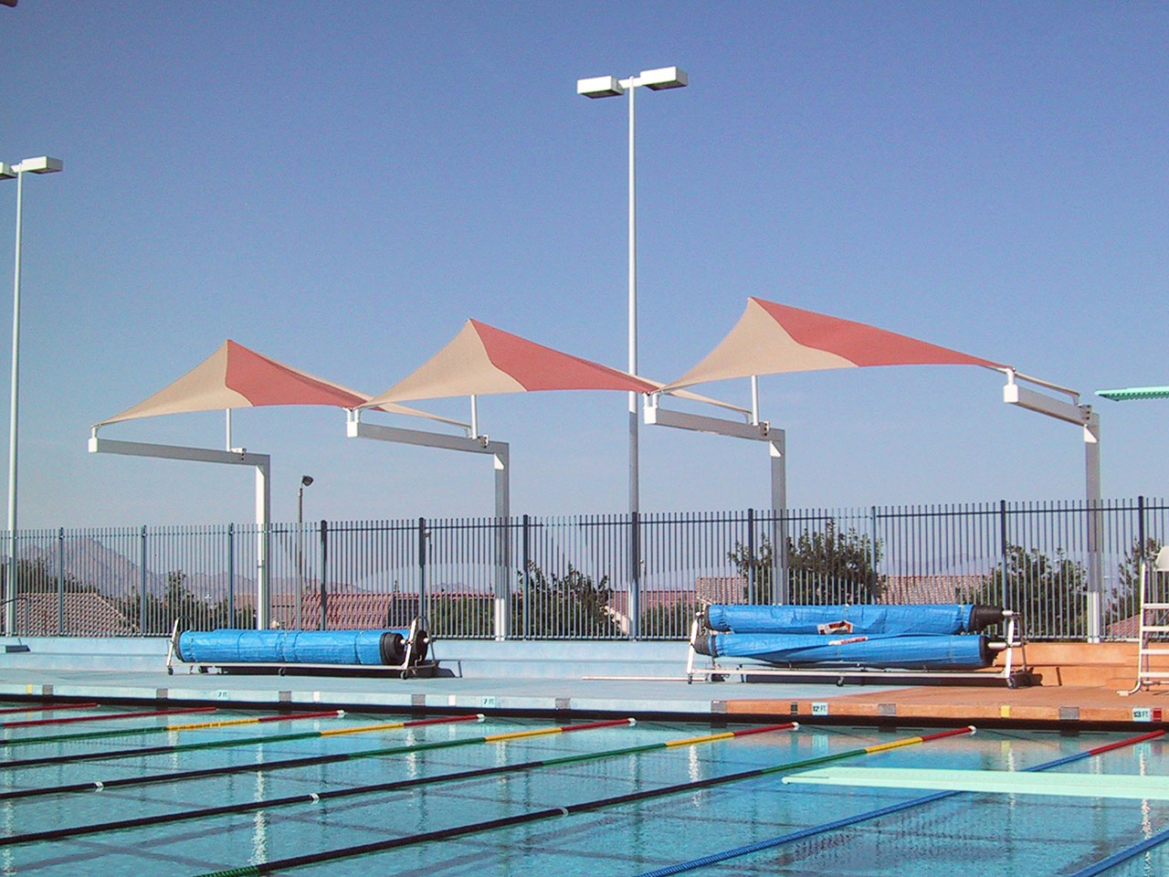 Spanning 12' or 20' in diameter, Coolbrellas are available in a wide variety of colors, and the fabrics can be easily removed ~ no wheels, wires, or pulleys. Wave structures offer a unique look, adding excitement and color to any area. These structures are designed to represent a "wave", with peaks and valleys. Because of this shape, Wave and Coolbrella structures are ideal for waterparks, poolside, seating areas, and more.