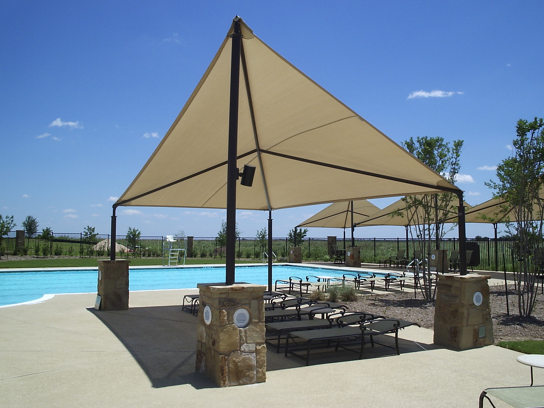 Wave structures offer a unique look, adding excitement and color to any area. These structures are designed to represent a “wave”, with peaks and valleys. Because of this shape, Wave structures are ideal for water parks, poolside, seating areas, and more.
