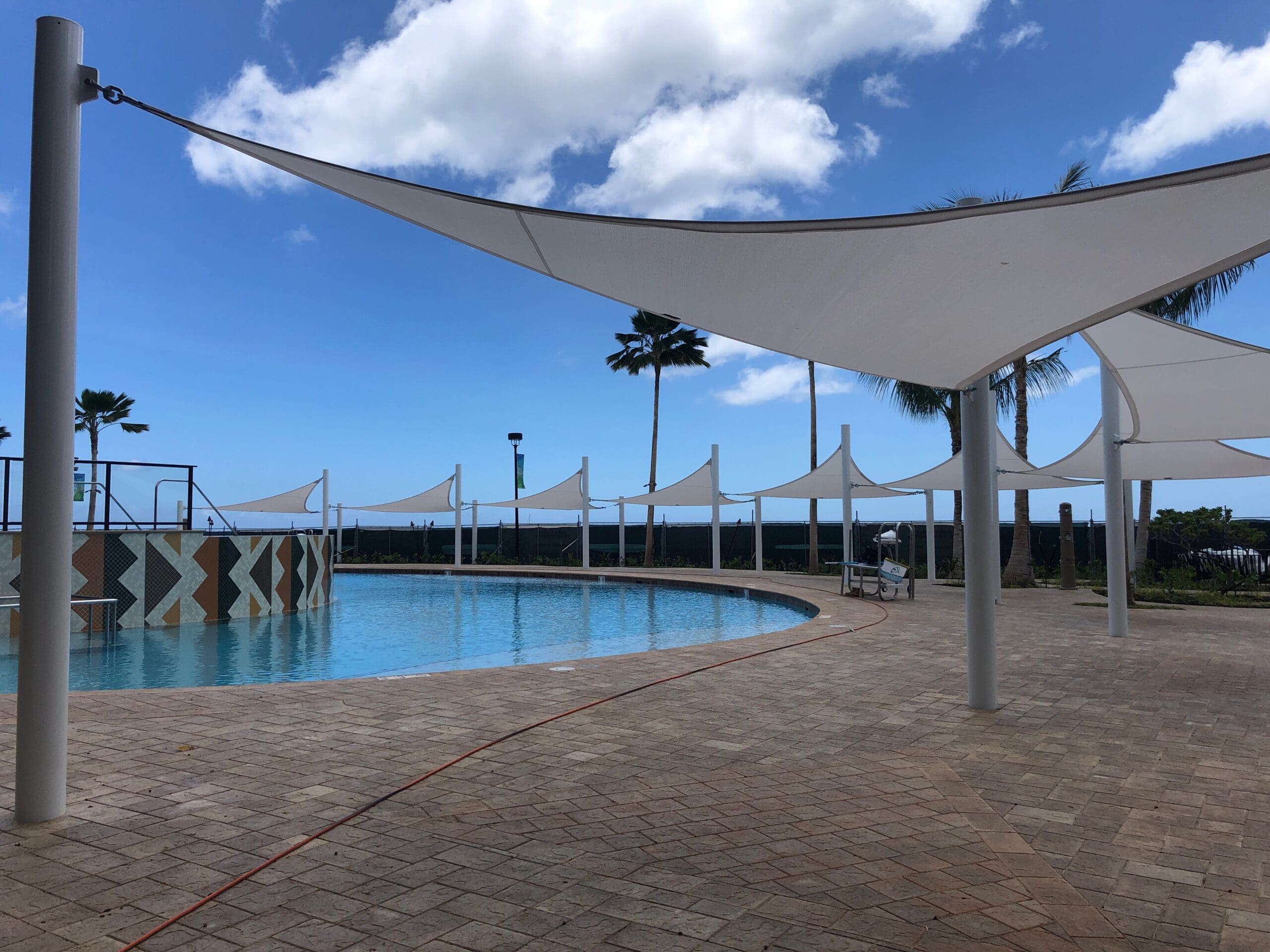 Orchestrated by one of our authorized distributors, this project was installed at a Hawaiian hotel designed exclusively for military members and their families. They positioned multiple 3-Point Sail structures around the radius of the hotel's pool, providing great aesthetics and plenty of shade.