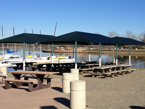 This Aquatic Center in Sacramento chose our Two Post Hip structures for the seating area adjacent to the marina. The “workhorse” of our product line, Hip structures are ideal for shading a wide variety of areas. Its roof design features clean, straight lines which is a common look for surrounding buildings and structures.