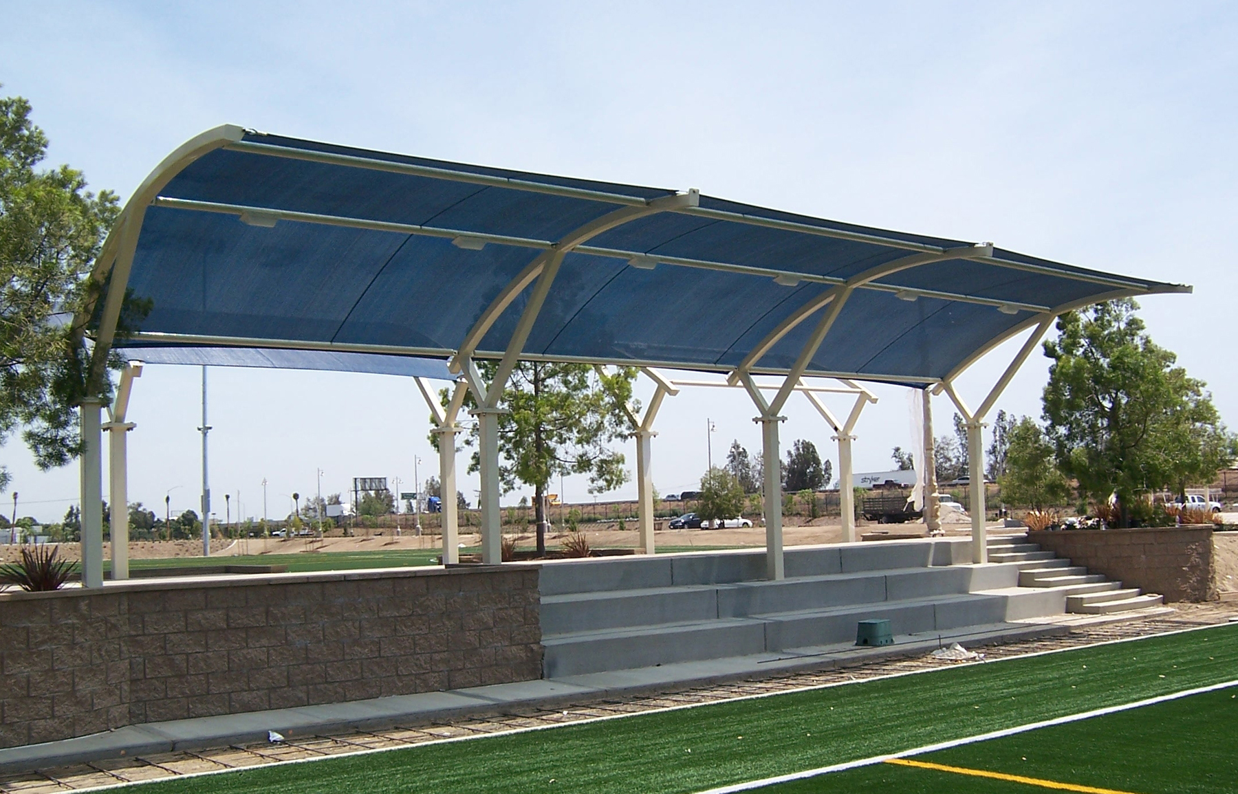 "This Custom Panorama structure provides shade for this bleacher seating area at a Soccer field. Let our designers and engineers assist you with a custom shade structure that conforms to your exact requirements. We’ll create a shade solution that will give your facility an innovative new look, and your company a competitive edge."