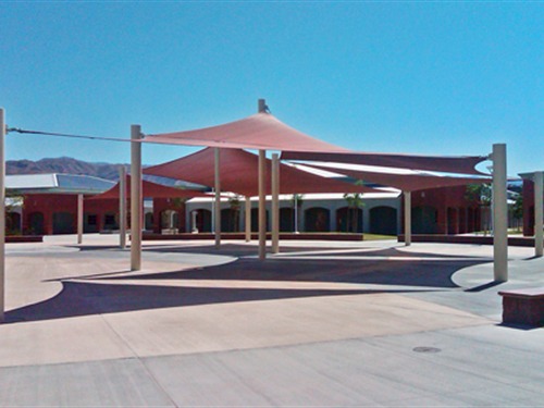 These custom structures feature a mix of 3-Point Sails and 5-Point Sails and bring a touch of class to this Indio, California school.